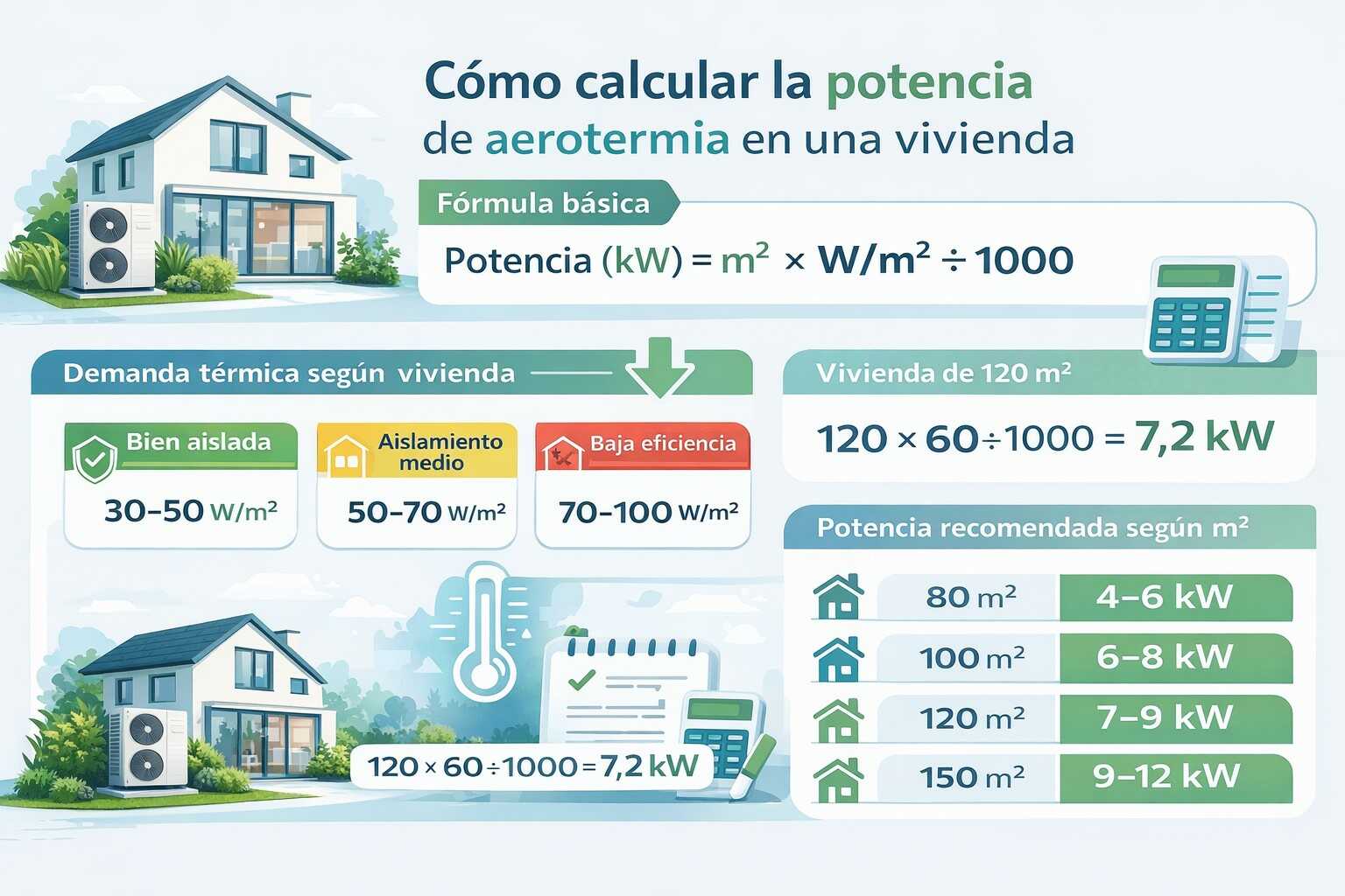 En esta guía aprenderás cómo calcular la potencia de aerotermia para una vivienda paso a paso, con ejemplos reales y fórmulas simples.